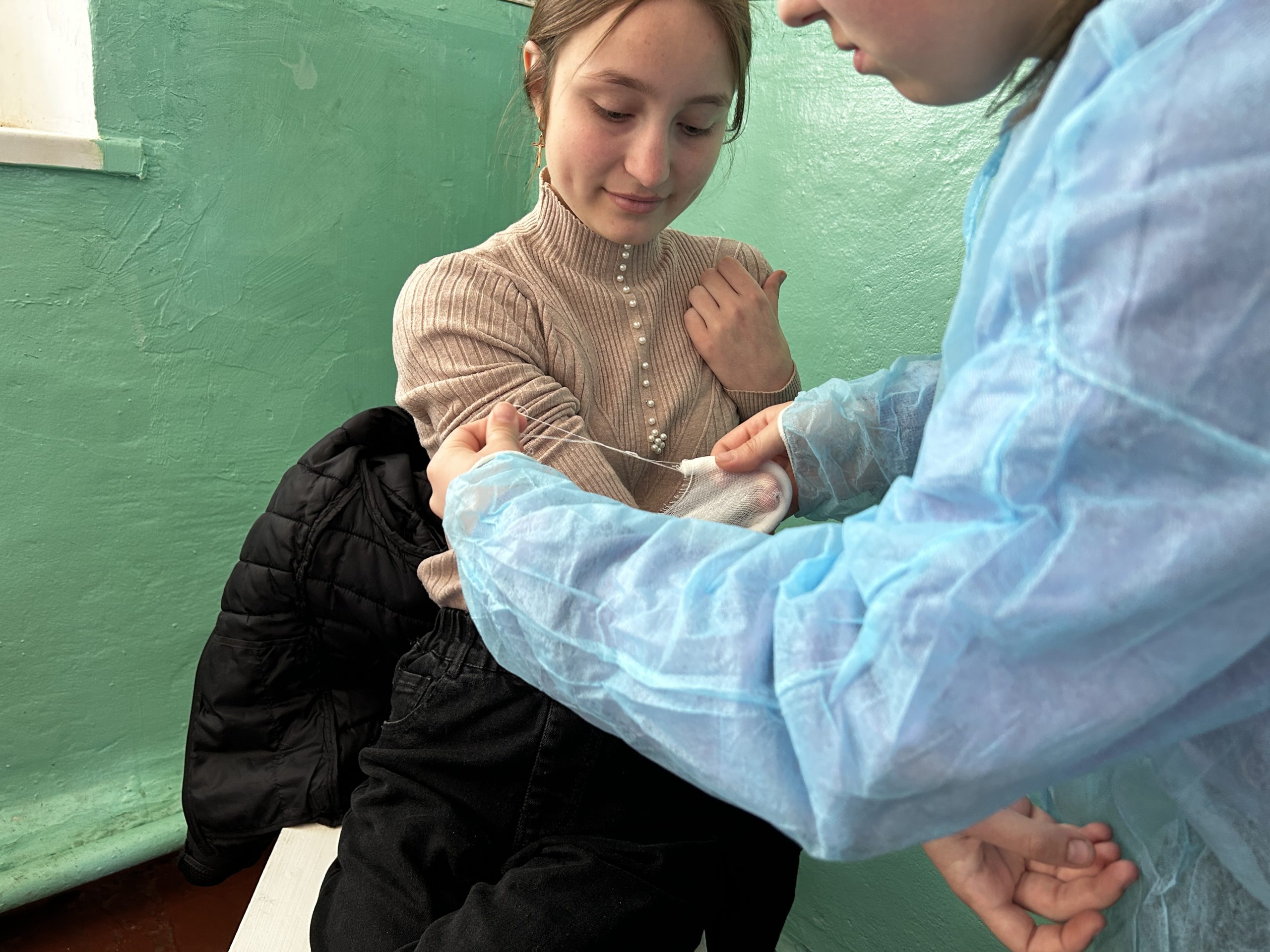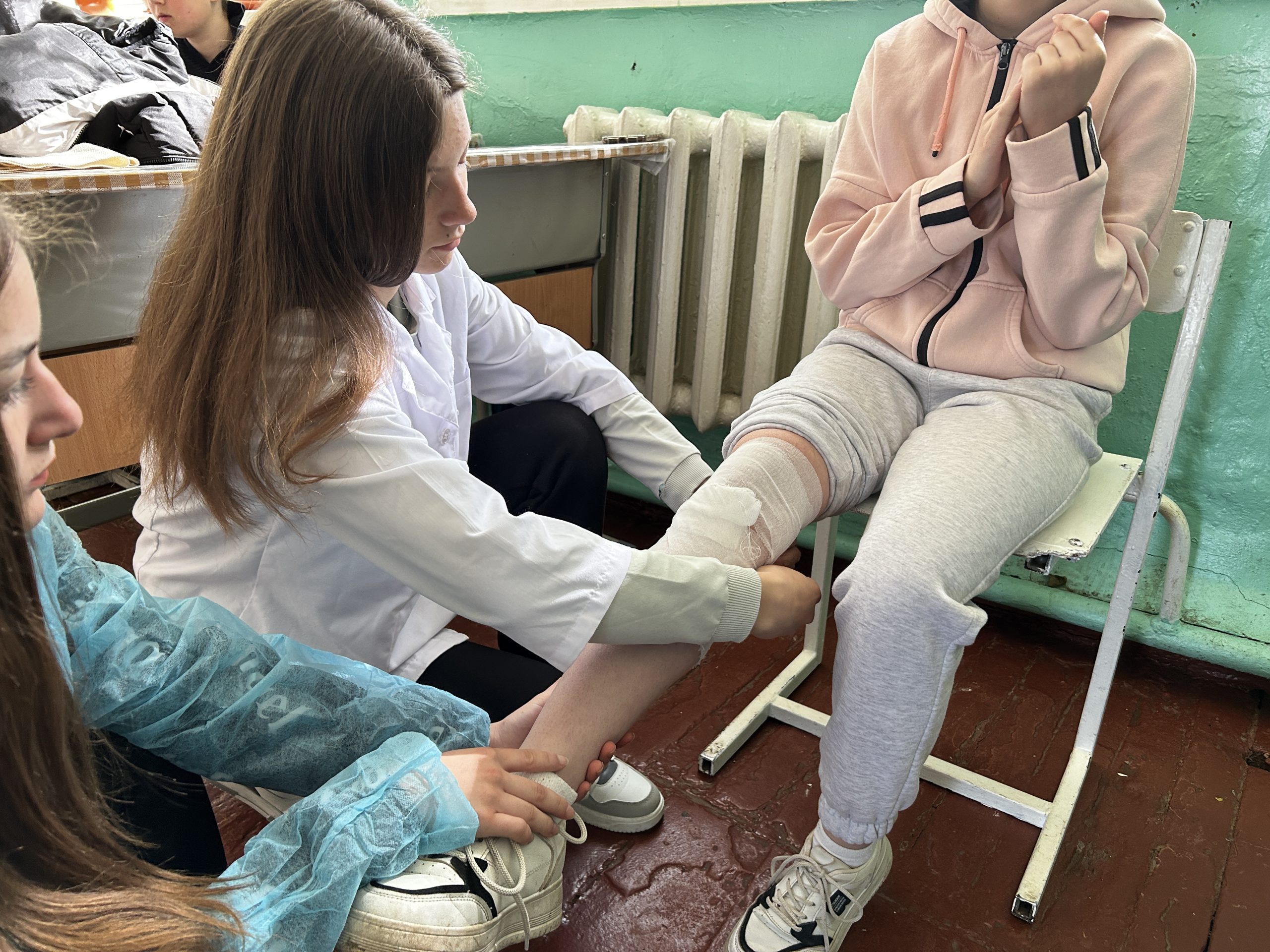 📷 În imagini, elevii aplică și exersează corect tehnicile de fixare a pansamentelor, învățând cum să acționeze eficient în cazuri reale. Fiecare exercițiu a fost realizat într-un mediu controlat, sub atenta supraveghere a cadrelor de specialitate.